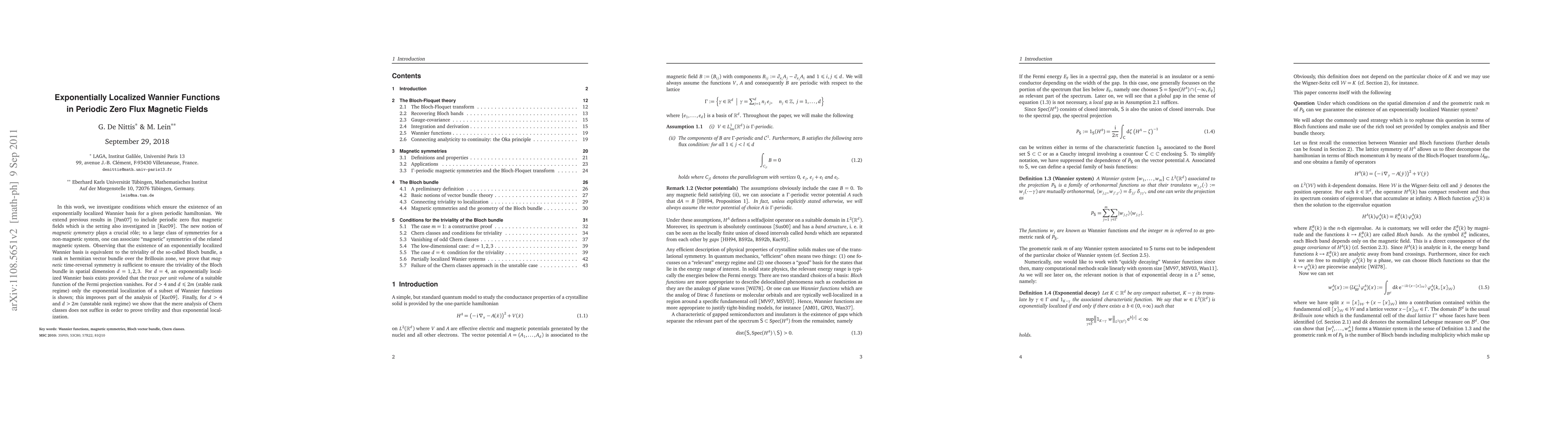 This paper explores conditions for the existence of exponentially localized Wannier functions in periodic Hamiltonians under zero flux magnetic fields, extending prior work by introducing magnetic symmetry. It proves that magnetic time-reversal symmetry ensures triviality of the Bloch bundle in spatial dimensions d=1,2,3, and discusses conditions for d=4 and higher dimensions, highlighting limitations in using Chern classes for localization.