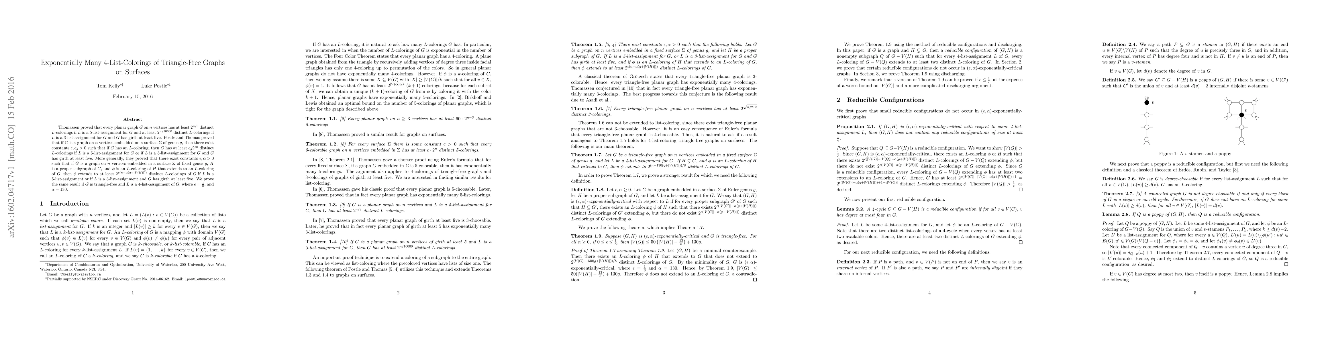 Researchers prove that triangle-free graphs on surfaces have exponentially many 4-list-colorings, with a lower bound of $2^{rac{1}{8}n}$ distinct colorings if using a 4-list-assignment.
