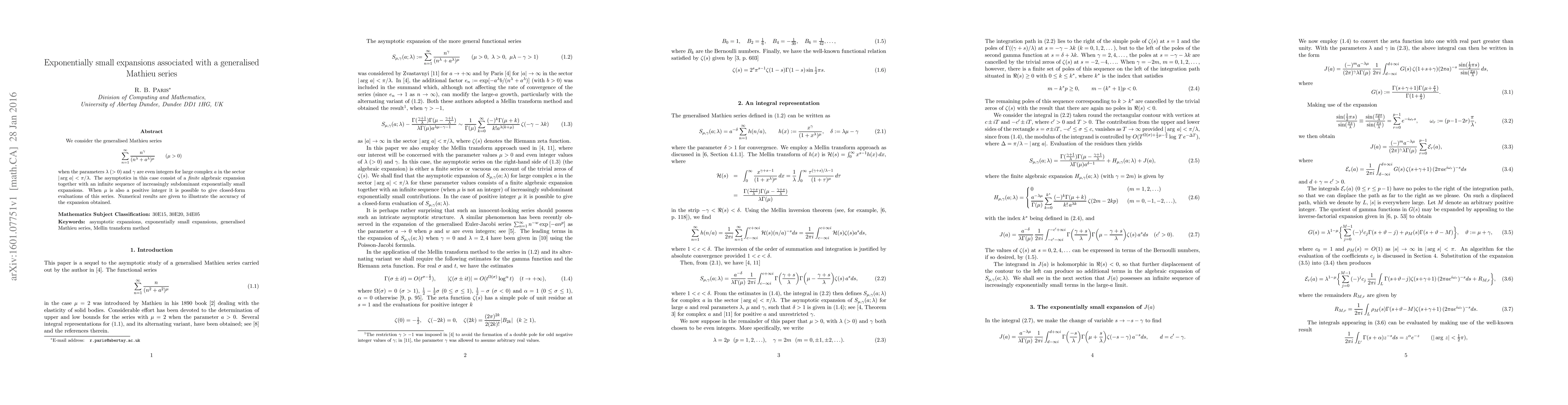 A generalized Mathieu series is analyzed for its asymptotics when certain parameters lead to a finite algebraic expansion alongside increasingly subdominant exponentially small expansions.