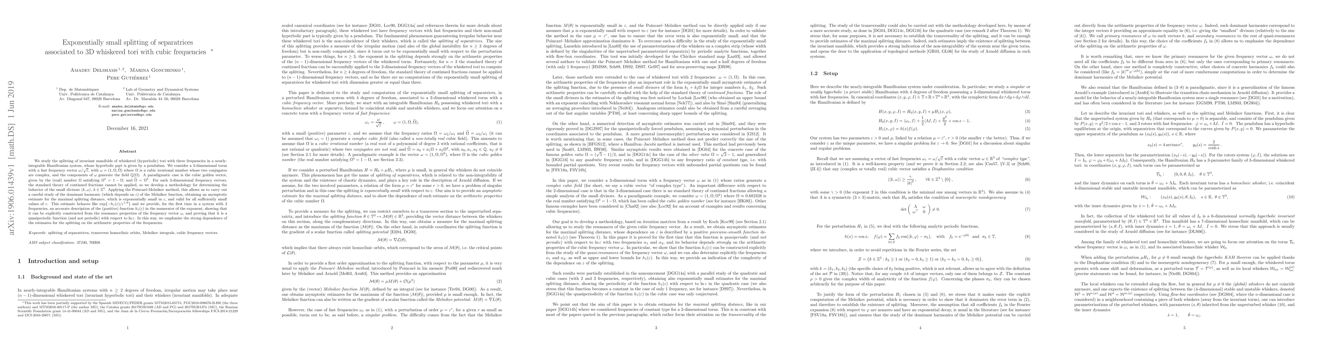 This paper investigates the exponentially small splitting of invariant manifolds in a nearly-integrable Hamiltonian system with 3D whiskered tori and cubic irrational frequencies. It develops a novel methodology for estimating the maximal splitting distance, showing it is exponentially small in ε and explicitly constructs a quasiperiodic function describing the splitting, highlighting the dependence on the arithmetic properties of the frequencies.