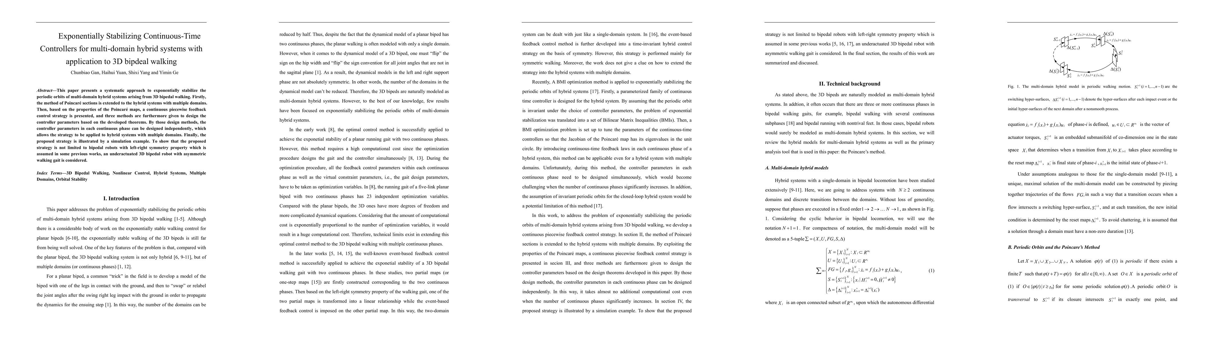 Researchers developed a method to stabilize periodic orbits in 3D bipedal walking systems with multiple domains, enabling controllers that can adapt to different phases independently.