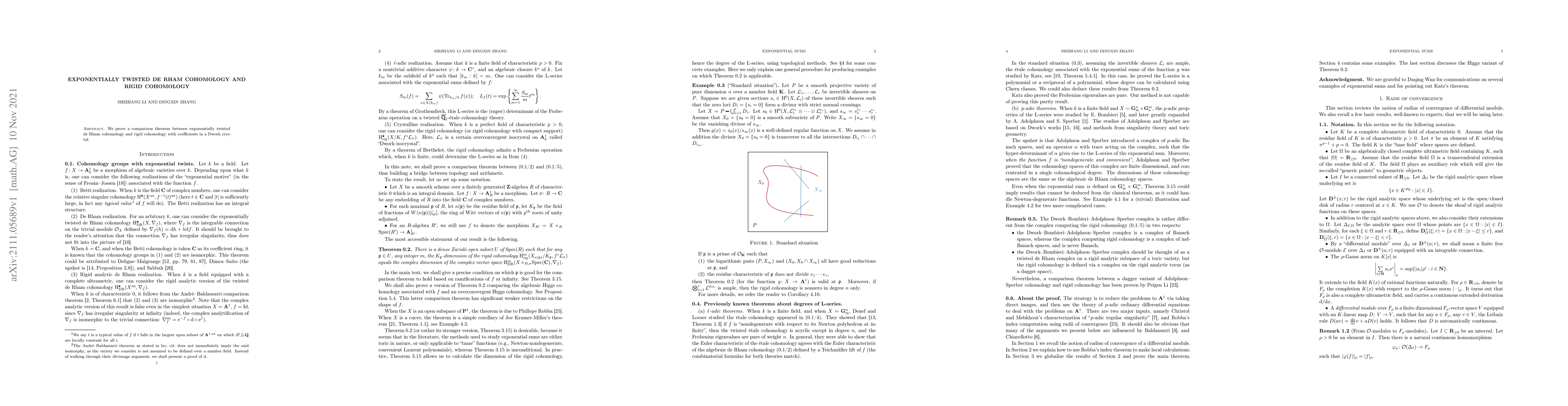 This paper establishes a comparison theorem between exponentially twisted de Rham cohomology and rigid cohomology, focusing on the latter with coefficients in a Dwork crystal, thereby bridging two advanced cohomology theories.