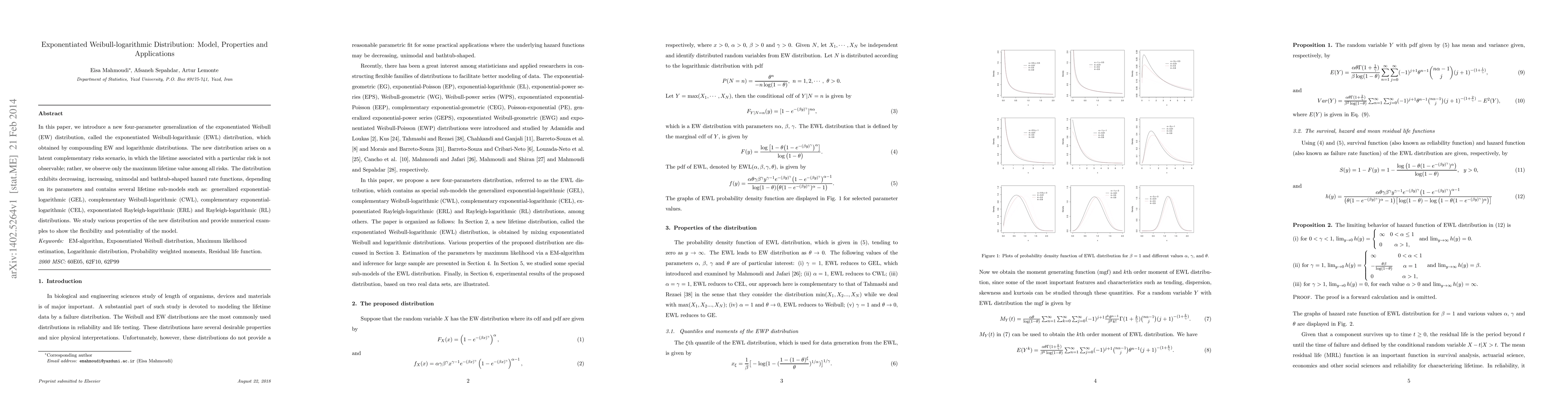 This paper introduces the new exponentiated Weibull-logarithmic (EWL) distribution, a four-parameter generalization of the exponentiated Weibull distribution, which accommodates various hazard rate shapes and is applicable in latent complementary risks scenarios. The EWL distribution demonstrates flexibility through its sub-models and various properties, making it a versatile tool for lifetime data analysis.