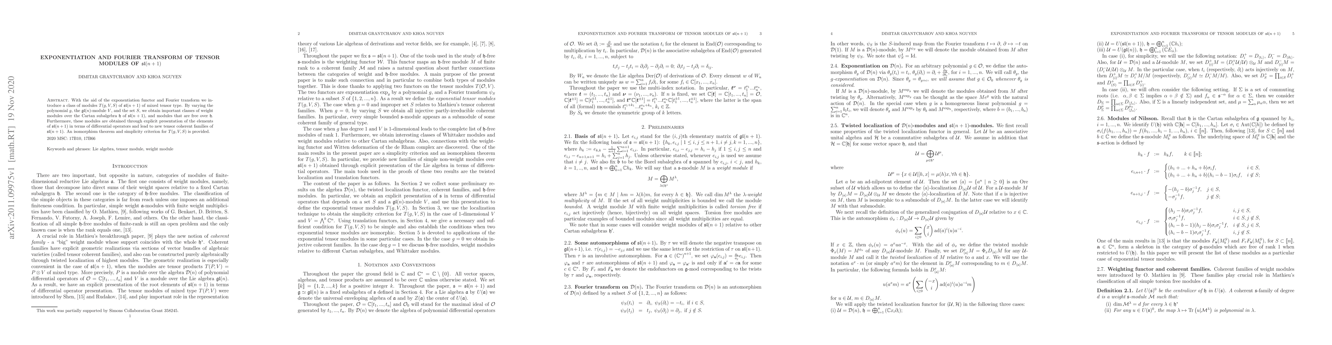This paper introduces a class of $\mathfrak{sl}(n+1)$ tensor modules $T(g,V,S)$ using exponentiation and Fourier transform, leading to significant weight and free modules over $\mathfrak{h}$. The study provides an isomorphism theorem and a simplicity criterion for these modules.