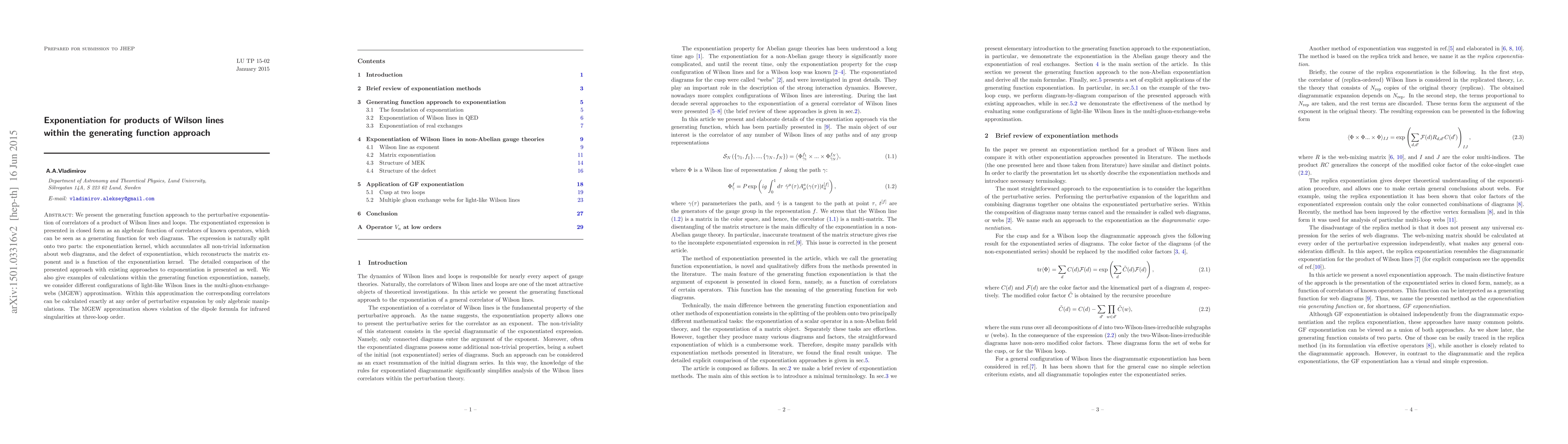 We present the generating function approach to the perturbative exponentiation of correlators of a product of Wilson lines and loops. The exponentiated expression is presented in closed form as an algebraic function of correlators of known operators, which can be seen as a generating function for web diagrams. The expression is naturally split onto two parts: the exponentiation kernel, which accumulates all non-trivial information about web diagrams, and the defect of exponentiation, which reconstructs the matrix exponent and is a function of the exponentiation kernel. The detailed comparison of the presented approach with existing approaches to exponentiation is presented as well. We also give examples of calculations within the generating function exponentiation, namely, we consider different configurations of light-like Wilson lines in the multi-gluon-exchange-webs (MGEW) approximation. Within this approximation the corresponding correlators can be calculated exactly at any order of perturbative expansion by only algebraic manipulations. The MGEW approximation shows violation of the dipole formula for infrared singularities at three-loop order.