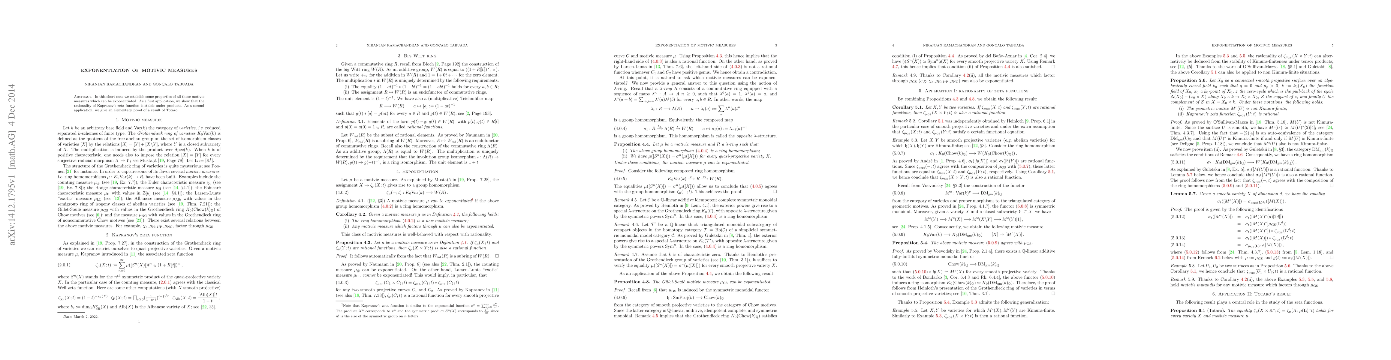This paper explores the properties of motivic measures that can be exponentiated, demonstrating the stability of Kapranov's zeta function rationality under products and providing an elementary proof of Totaro's result.