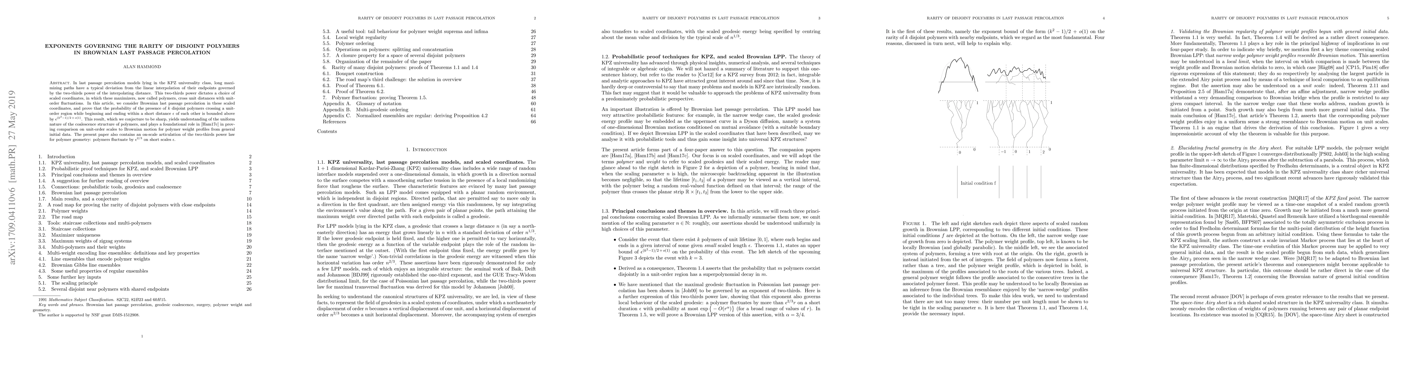 This paper explores the rarity of disjoint polymers in Brownian last passage percolation, showing that the probability of $k$ such polymers crossing a unit-order region is bounded by $\epsilon^{(k^2 - 1)/2 \, + \, o(1)}$. This result provides insight into the coalescence structure of polymers and supports comparison on unit-order scales to Brownian motion.