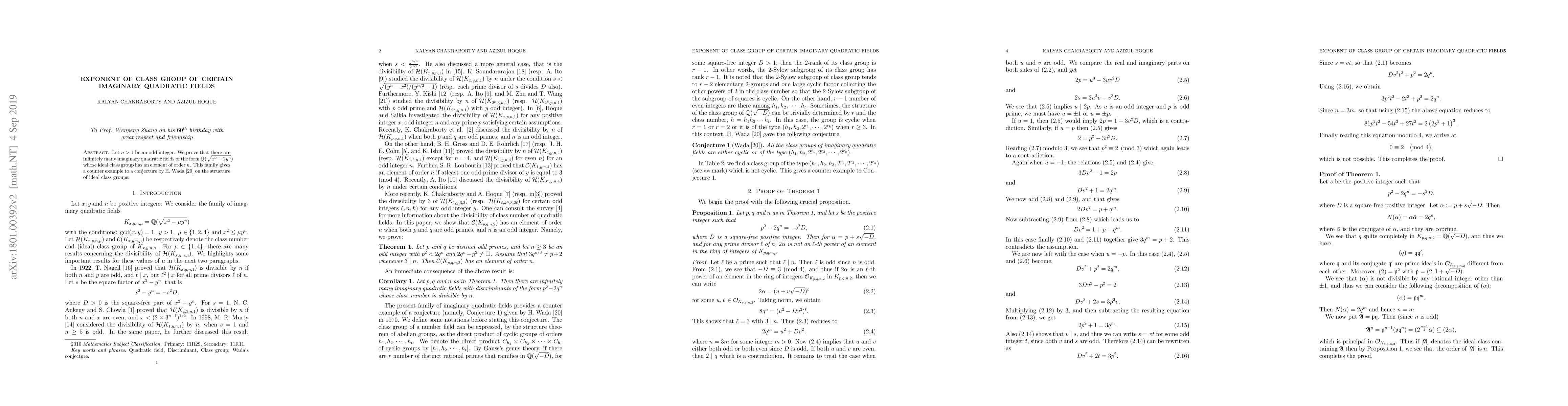 Summary: The paper demonstrates that there exist infinitely many imaginary quadratic fields of a specific form whose ideal class group contains an element of order $n$ for any odd integer $n>1$, thereby disproving a conjecture by H. Wada regarding the structure of ideal class groups.
