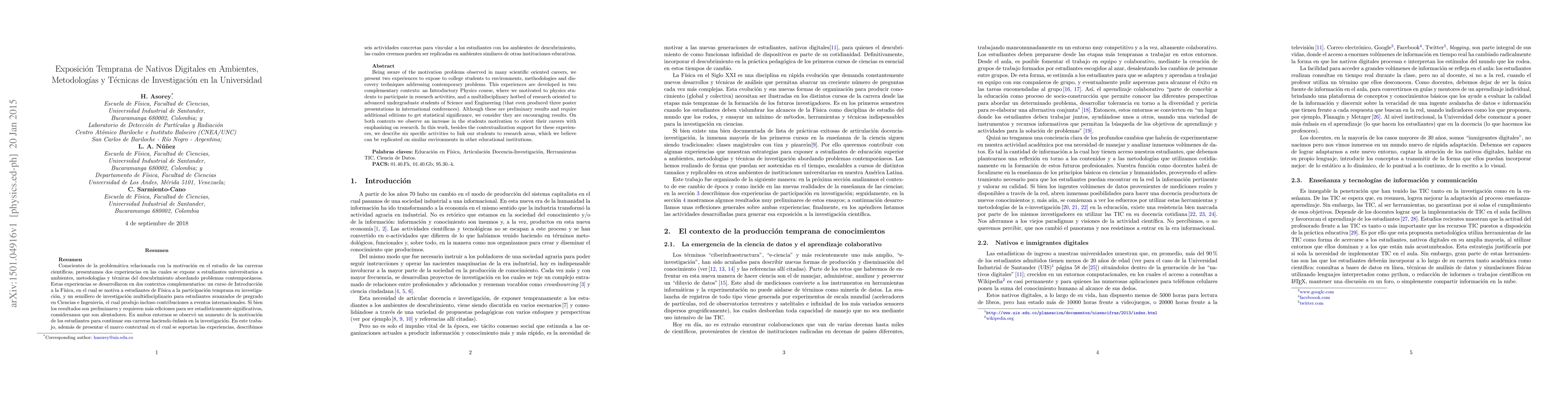 Being aware of the motivation problems observed in many scientific oriented careers, we present two experiences to expose to college students to environments, methodologies and discovery techniques addressing contemporary problems. This experiences are developed in two complementary contexts: an Introductory Physics course, where we motivated to physics students to participate in research activities, and a multidisciplinary hotbed of research oriented to advanced undergraduate students of Science and Engineering (that even produced three poster presentations in international conferences). Although these are preliminary results and require additional editions to get statistical significance, we consider they are encouraging results. On both contexts we observe an increase in the students motivation to orient their careers with emphasizing on research. In this work, besides the contextualization support for these experiences, we describe six specific activities to link our students to research areas, which we believe can be replicated on similar environments in other educational institutions.