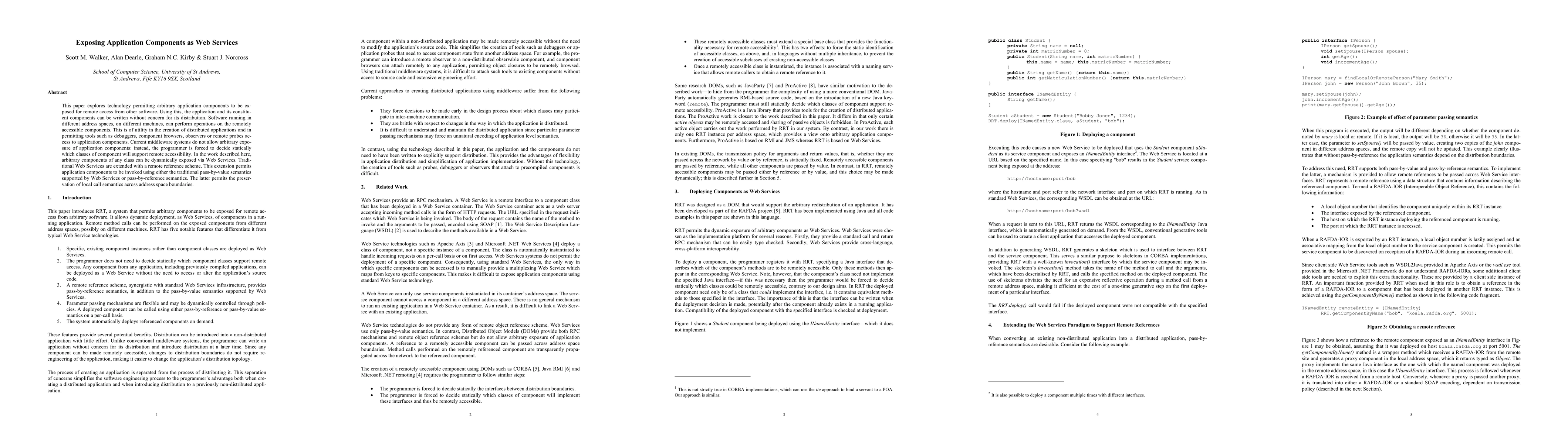 This paper introduces a way to expose arbitrary application components as web services, allowing them to be accessed remotely without modification, enabling the creation of distributed applications and tools like debuggers.