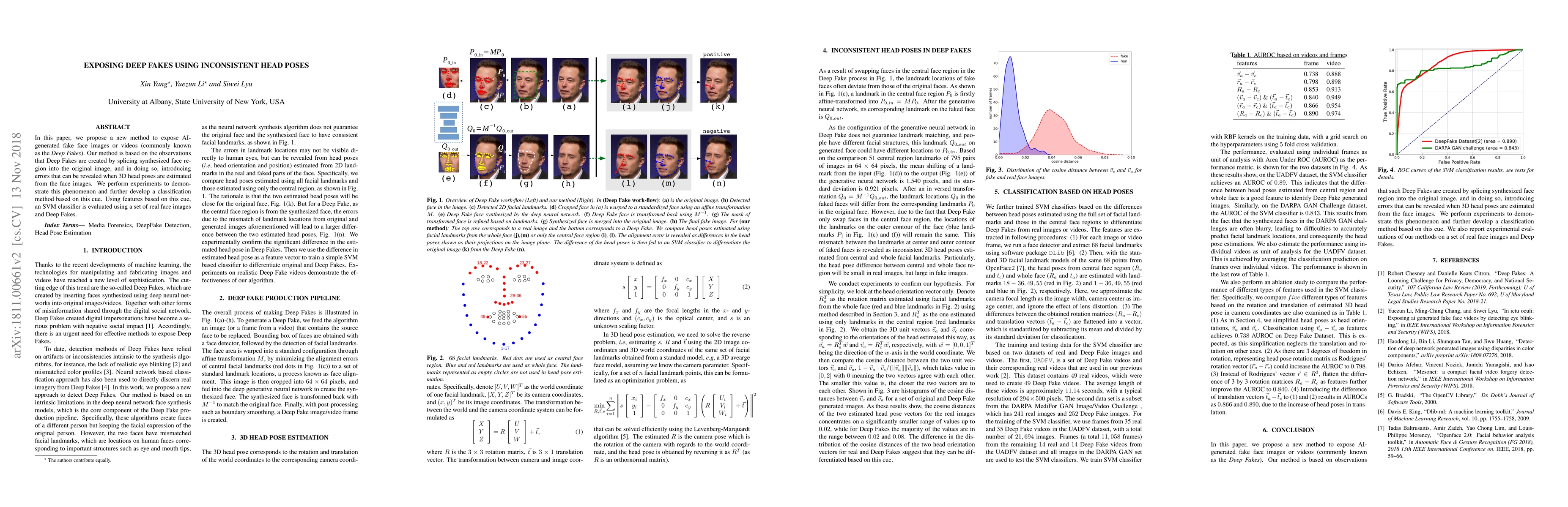 Researchers propose a method to expose AI-generated deep fakes using inconsistent head poses, which can reveal errors made during face region splicing. An SVM classifier evaluates the effectiveness of this cue in distinguishing real faces from fake ones.