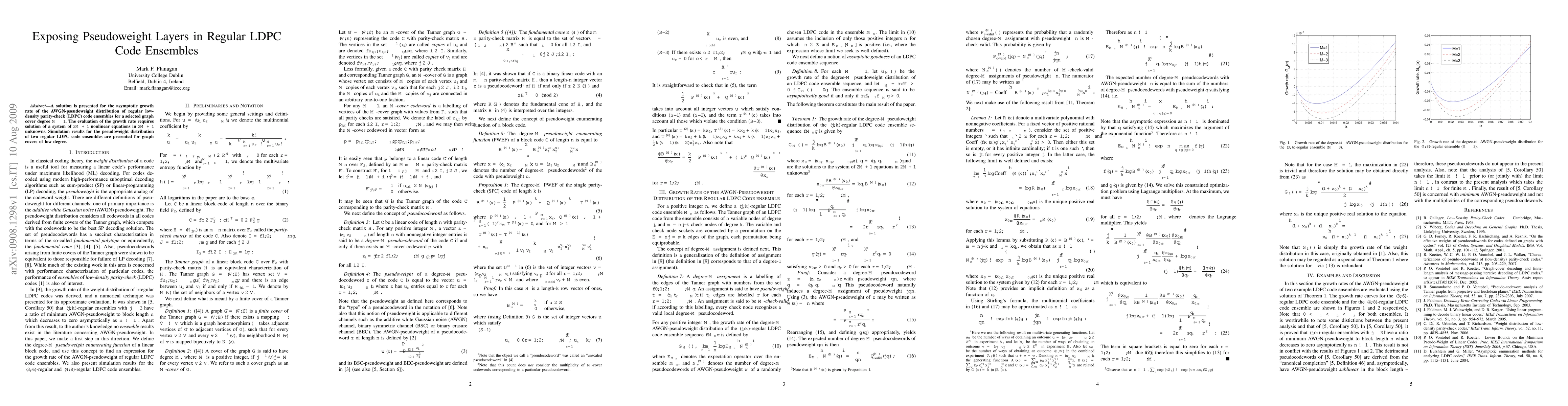 A solution is presented for the asymptotic growth rate of the AWGN-pseudoweight distribution of regular low-density parity-check (LDPC) code ensembles for a selected graph cover degree M >= 1. The evaluation of the growth rate requires solution of a system of 2M+1 nonlinear equations in 2M+1 unknowns. Simulation results for the pseudoweight distribution of two regular LDPC code ensembles are presented for graph covers of low degree.