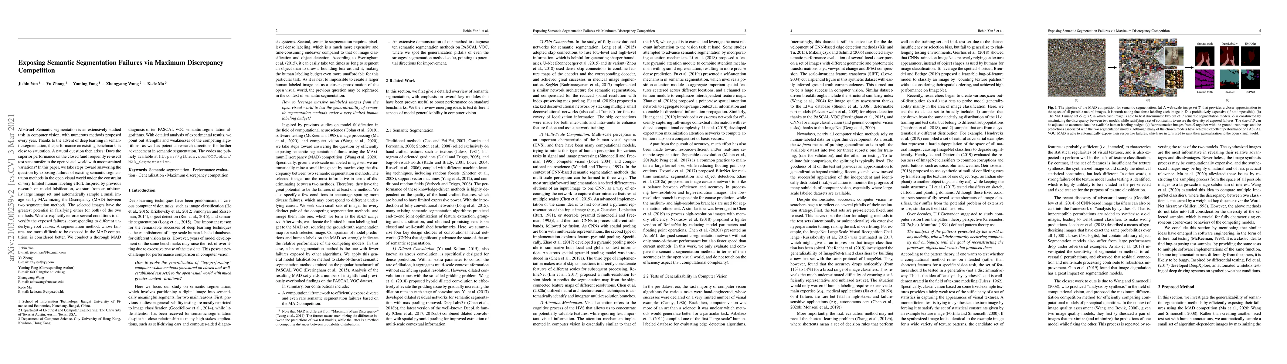 This paper exposes failures of semantic segmentation methods in unconstrained environments with limited human labeling, using a method called Maximum Discrepancy (MAD) that identifies images most likely to falsify these methods.