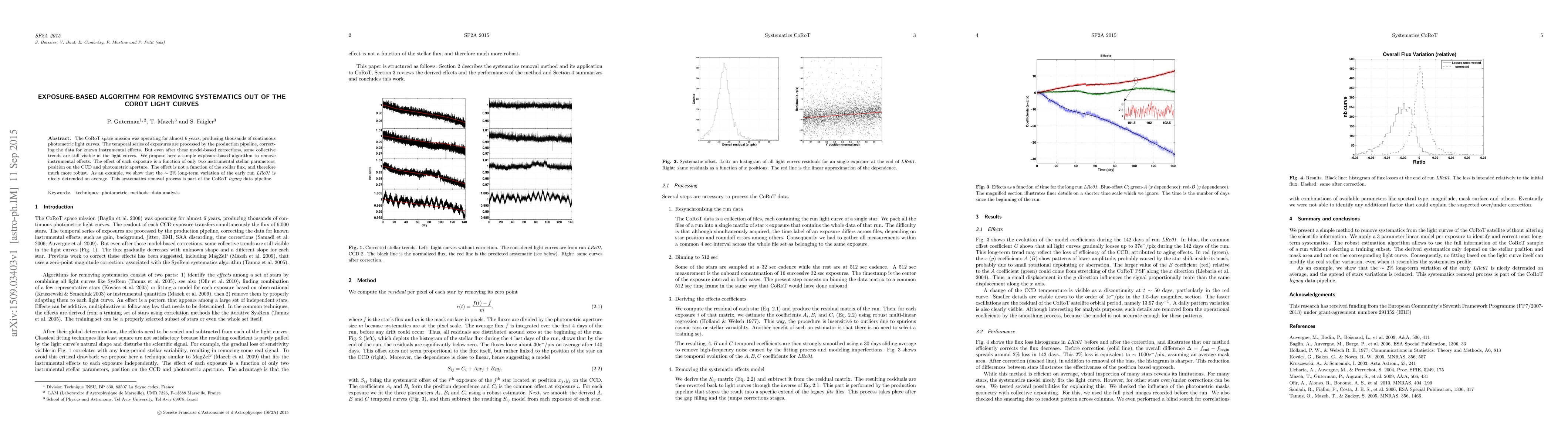 This paper introduces an exposure-based algorithm to eliminate systematic trends from CoRoT light curves, focusing on instrumental effects independent of stellar flux. The method effectively reduces long-term variations, enhancing the quality of the CoRoT legacy data.