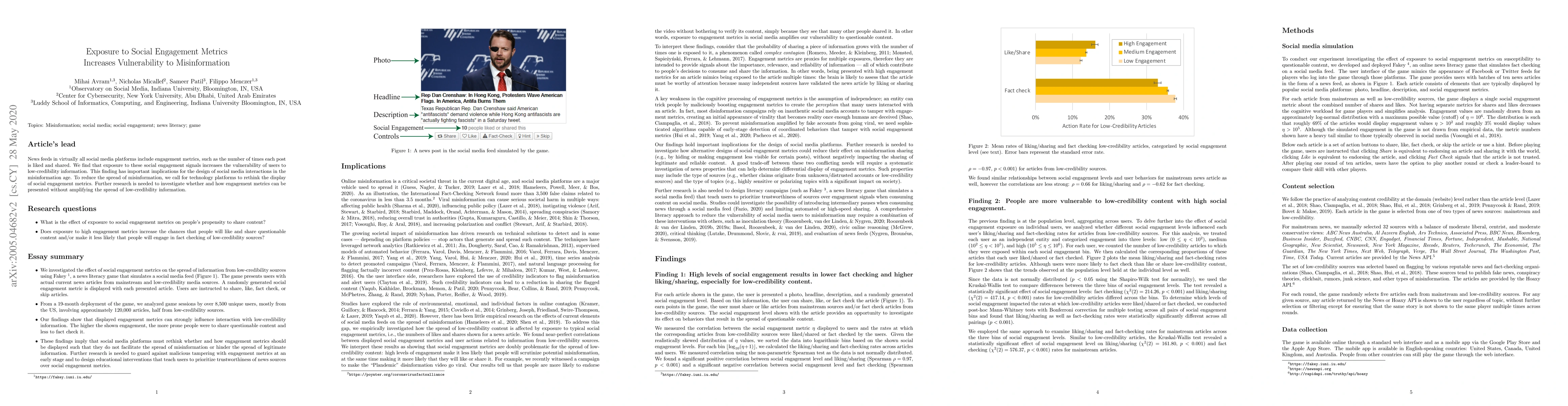 This study reveals that exposure to social media engagement metrics like likes and shares heightens users' susceptibility to misinformation. To mitigate the spread of false information, the research advocates for a reevaluation of how these metrics are displayed on platforms.