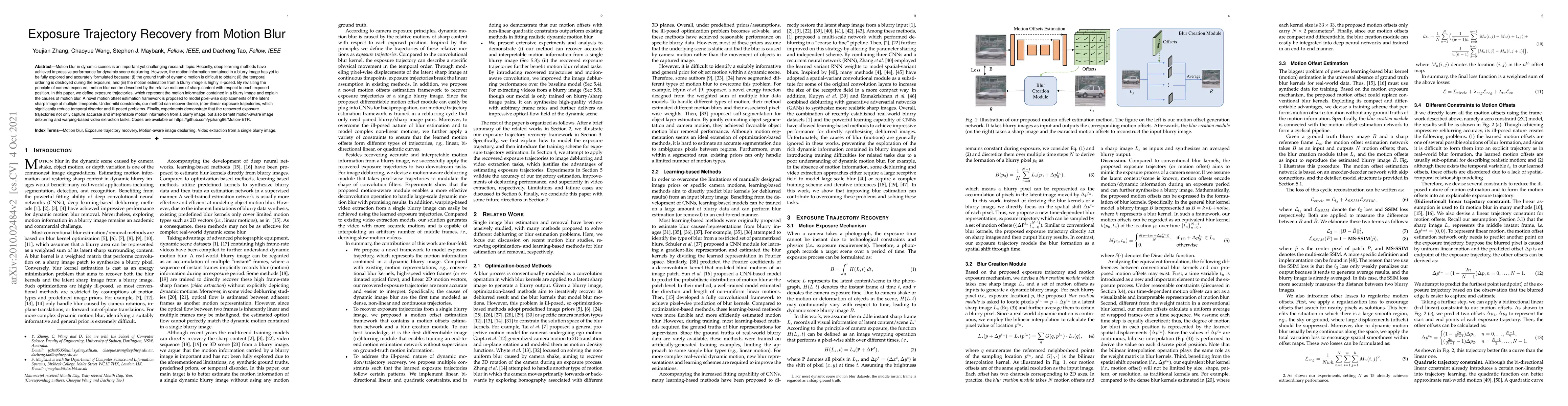 This paper proposes a novel framework to model and recover exposure trajectories from motion-blurred images, addressing the challenges of obtaining motion information due to exposure dynamics. The method estimates pixel-wise displacements to recover dense exposure trajectories, significantly reducing temporal disorder and improving deblurring and video extraction tasks.