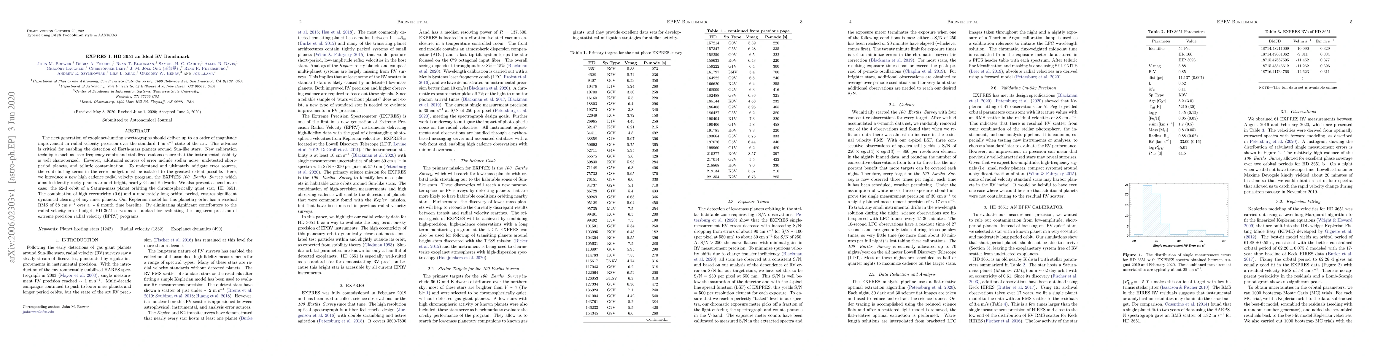 The next generation of exoplanet-hunting spectrographs should deliver up to an order of magnitude improvement in radial velocity precision over the standard 1 m/s state of the art. This advance is critical for enabling the detection of Earth-mass planets around Sun-like stars. New calibration techniques such as laser frequency combs and stabilized etalons ensure that the instrumental stability is well characterized. However, additional sources of error include stellar noise, undetected short-period planets, and telluric contamination. To understand and ultimately mitigate error sources, the contributing terms in the error budget must be isolated to the greatest extent possible. Here, we introduce a new high cadence radial velocity program, the EXPRES 100 Earths program, which aims to identify rocky planets around bright, nearby G and K dwarfs. We also present a benchmark case: the 62-d orbit of a Saturn-mass planet orbiting the chromospherically quiet star, HD 3651. The combination of high eccentricity (0.6) and a moderately long orbital period, ensures significant dynamical clearing of any inner planets. Our Keplerian model for this planetary orbit has a residual RMS of 58 cm/s over a $\sim 6$ month time baseline. By eliminating significant contributors to the radial velocity error budget, HD 3651 serves as a standard for evaluating the long term precision of extreme precision radial velocity (EPRV) programs.
