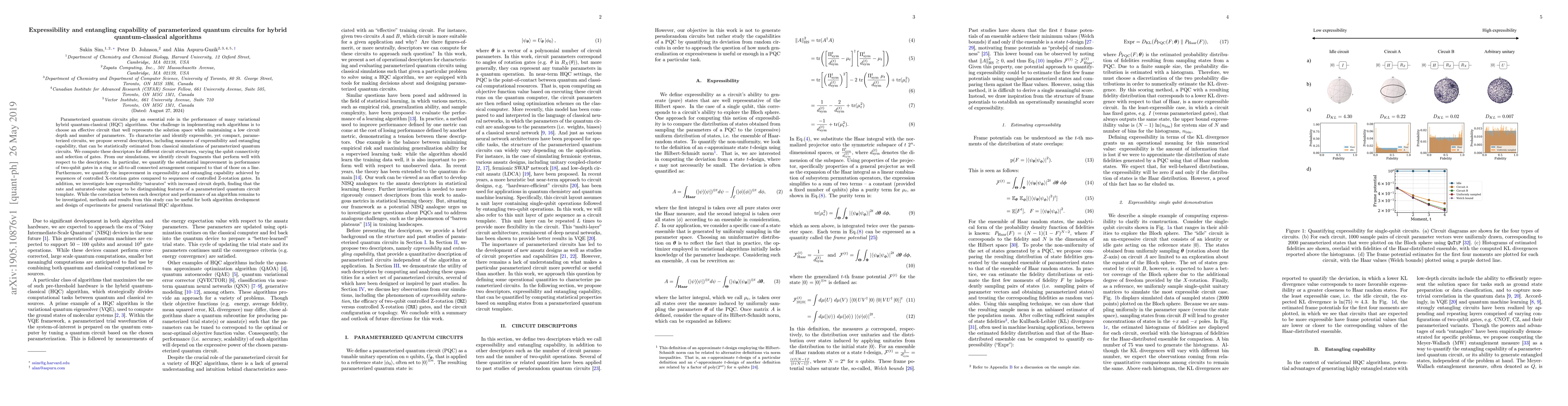 This paper proposes descriptors to characterize expressibility and entangling capability of parameterized quantum circuits used in hybrid quantum-classical algorithms. It identifies circuit fragments that perform well, showing significant improvements in performance for certain gate arrangements and gate sequences.