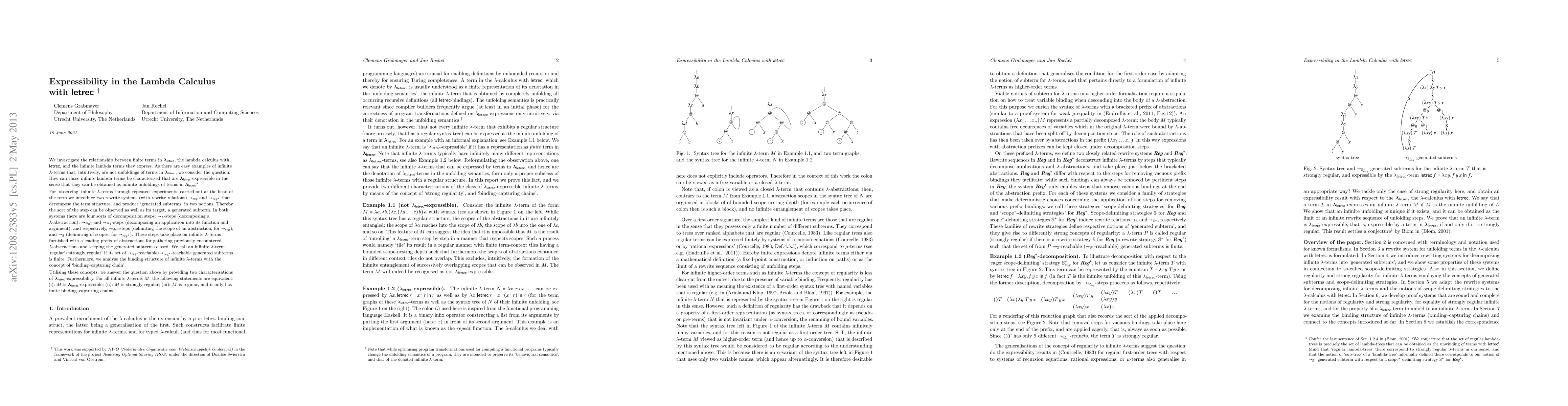 The research investigates the expressibility of infinite lambda-terms through lambda-letrec using rewrite systems and concepts like regularity, strong regularity, and binding-capturing chains.