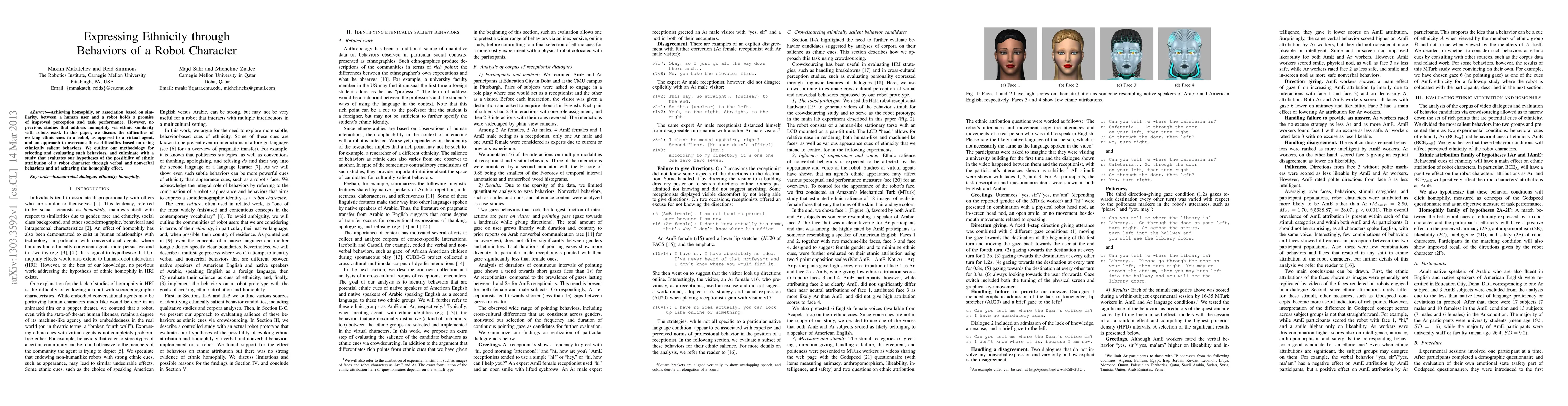 Achieving homophily, or association based on similarity, between a human user and a robot holds a promise of improved perception and task performance. However, no previous studies that address homophily via ethnic similarity with robots exist. In this paper, we discuss the difficulties of evoking ethnic cues in a robot, as opposed to a virtual agent, and an approach to overcome those difficulties based on using ethnically salient behaviors. We outline our methodology for selecting and evaluating such behaviors, and culminate with a study that evaluates our hypotheses of the possibility of ethnic attribution of a robot character through verbal and nonverbal behaviors and of achieving the homophily effect.