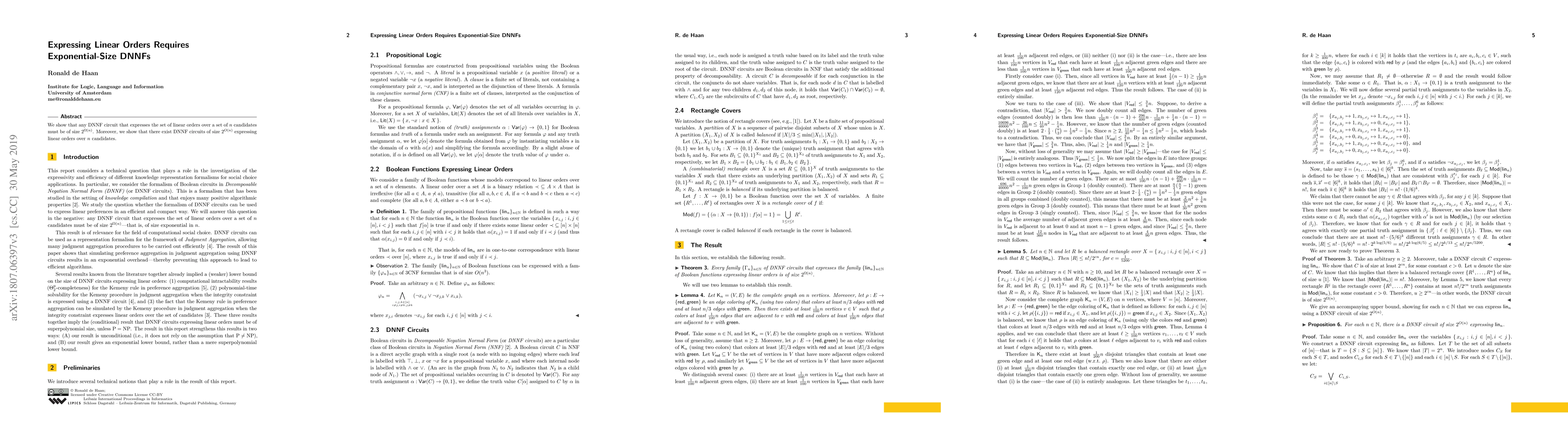 Researchers found that expressing linear orders over n candidates requires DNNF circuits of exponential size (2^{ extstyle ilde{n}}), but also showed smaller circuits (2^{O(n)}) exist.