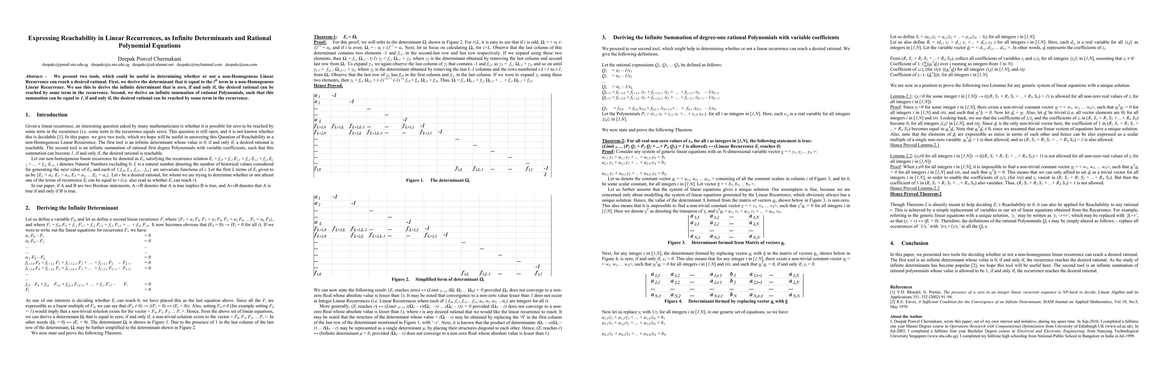 Researchers developed tools to determine if a non-Homogenous Linear Recurrence can reach a desired rational value, using infinite determinants and summations of rational polynomials.