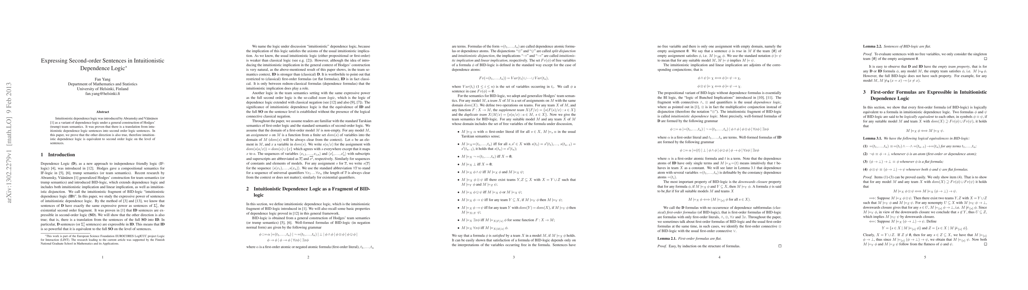 This paper demonstrates that intuitionistic dependence logic can express second-order sentences, proving its equivalence to second-order logic on the level of sentences, complementing a previous translation from second-order to intuitionistic dependence logic.