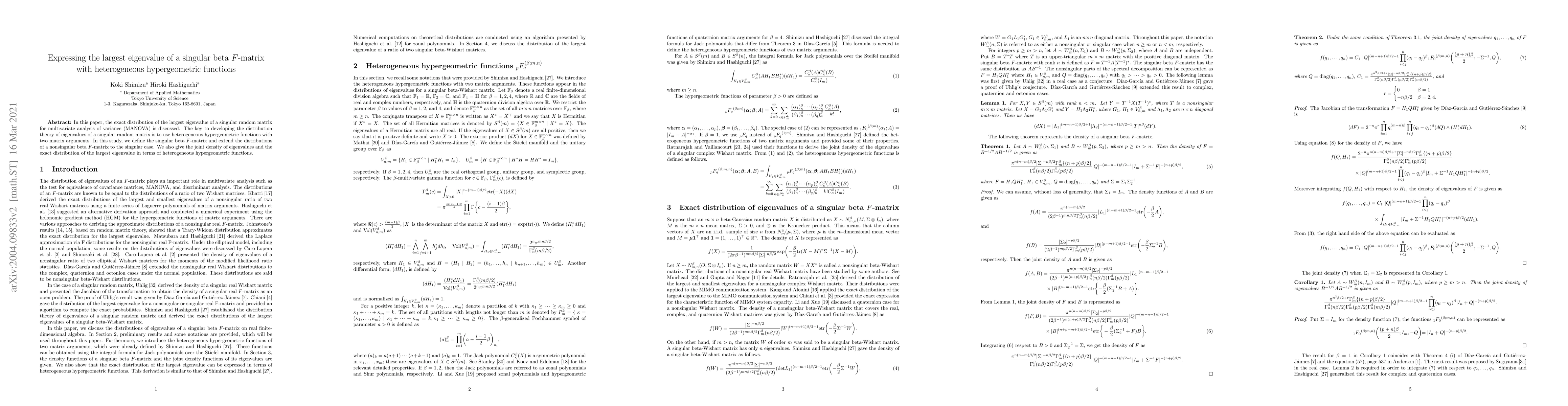 In this paper, the exact distribution of the largest eigenvalue of a singular random matrix for multivariate analysis of variance (MANOVA) is discussed. The key to developing the distribution theory of eigenvalues of a singular random matrix is to use heterogeneous hypergeometric functions with two matrix arguments. In this study, we define the singular beta F-matrix and extend the distributions of a nonsingular beta F -matrix to the singular case. We also give the joint density of eigenvalues and the exact distribution of the largest eigenvalue in terms of heterogeneous hypergeometric functions.