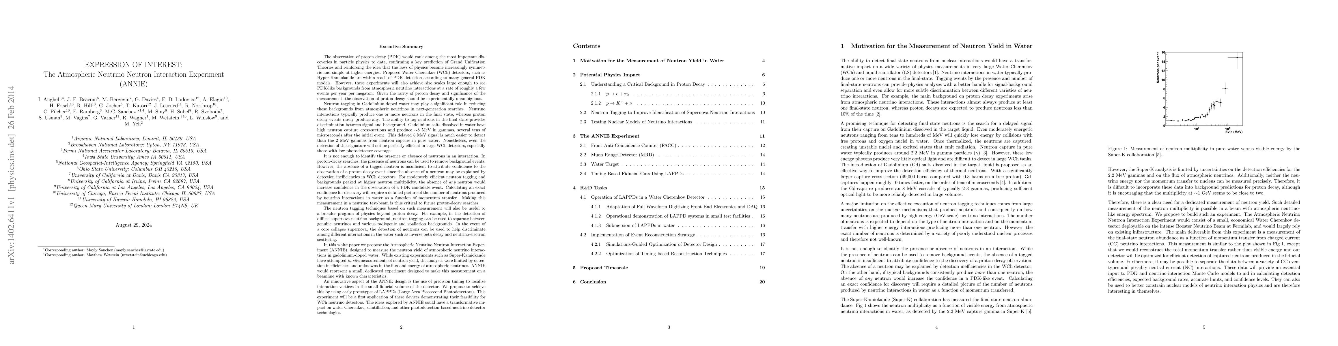 The ANNIE experiment aims to measure neutron yields from atmospheric neutrino interactions in gadolinium-doped water to reduce backgrounds in proton-decay searches and supernova neutrino detection. Utilizing precision timing with LAPPDs, ANNIE will localize interaction vertices, showcasing the feasibility of these devices in Water Cherenkov detectors.