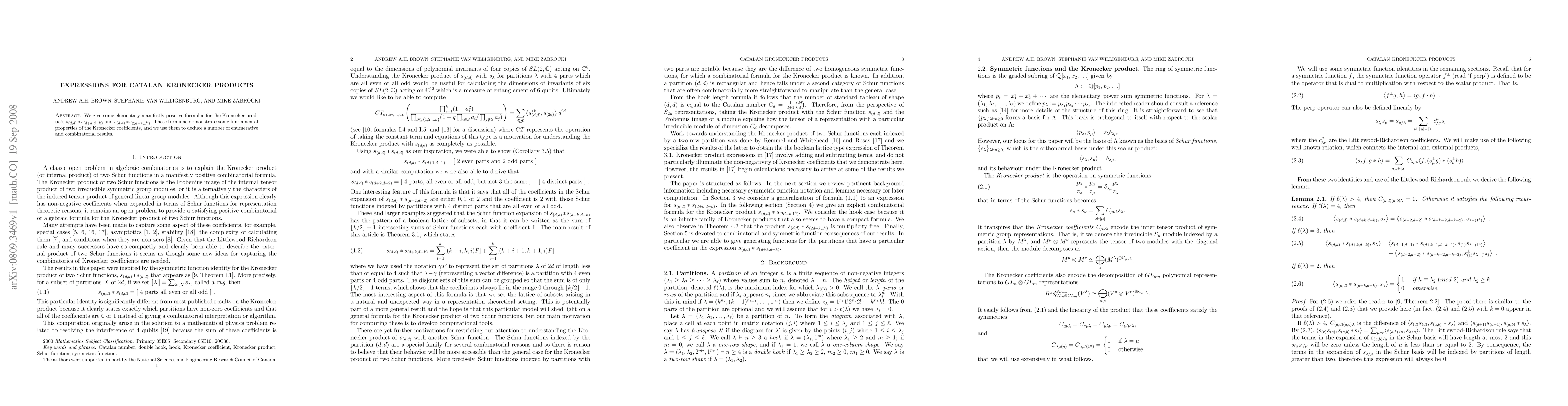 This paper presents simple, positive expressions for specific Catalan Kronecker products, revealing fundamental properties of Kronecker coefficients and leading to new enumerative and combinatorial insights.
