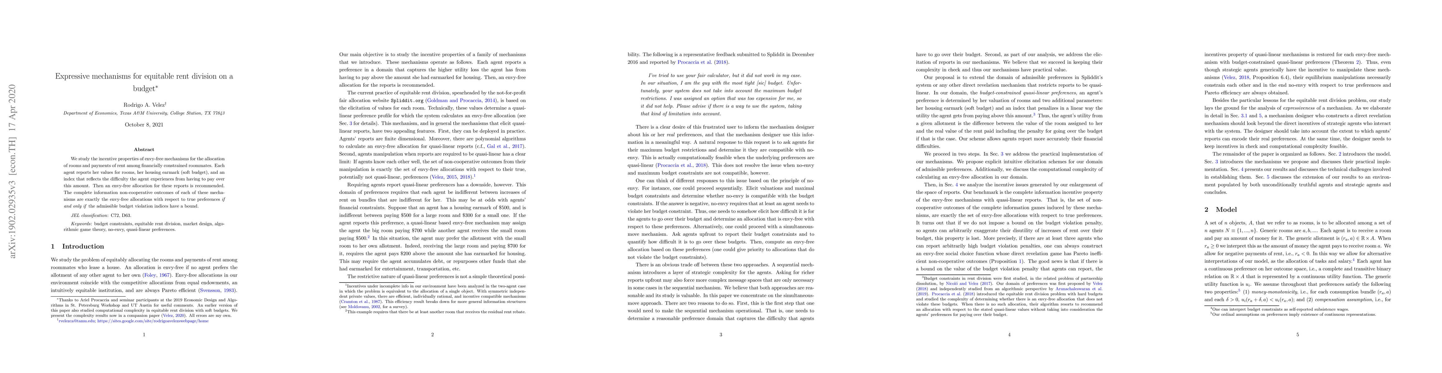 Researchers develop mechanisms to fairly divide rent among roommates while respecting their budget constraints, finding that complete information is necessary for optimal outcomes.