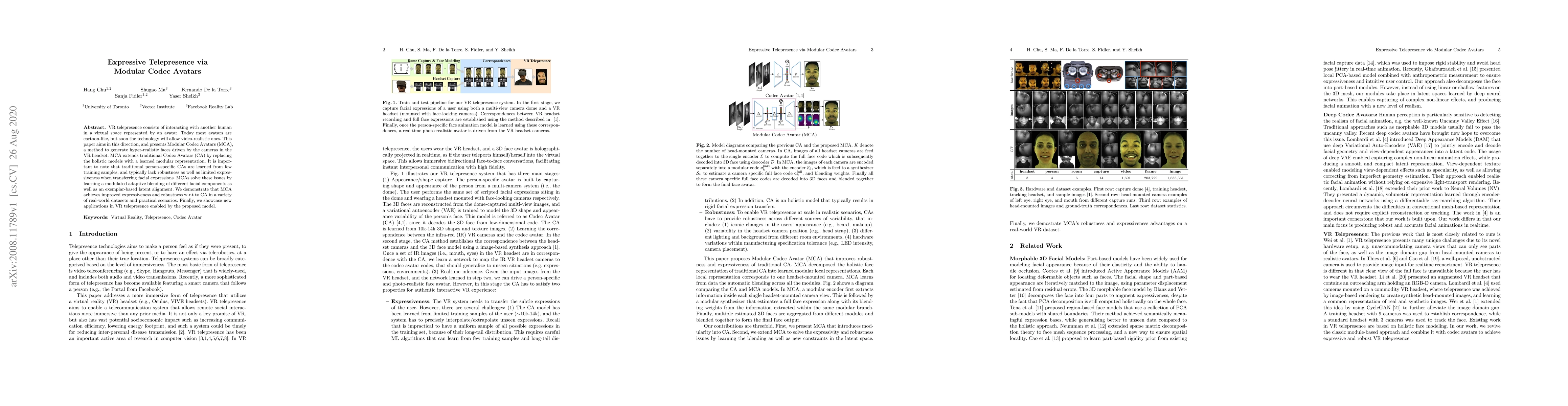 This paper introduces Modular Codec Avatars (MCA) to create hyper-realistic, expressive avatars for VR telepresence, addressing the limitations of traditional Codec Avatars by employing a modular representation and adaptive blending of facial components. MCAs demonstrate enhanced expressiveness and robustness across various datasets and scenarios.