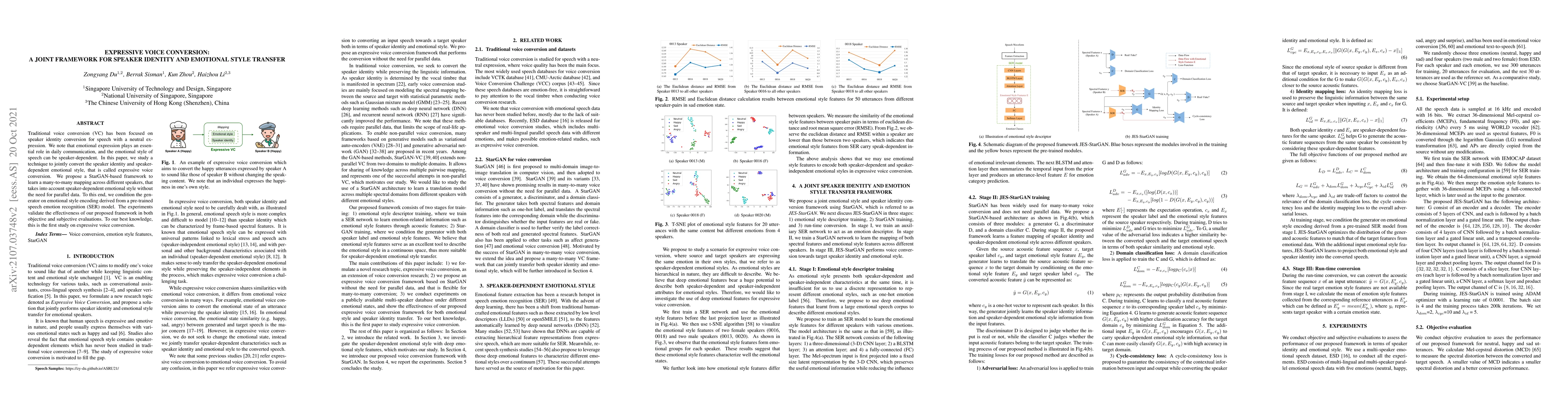 This paper introduces a StarGAN-based framework for expressive voice conversion, enabling the joint transformation of speaker identity and speaker-dependent emotional style without parallel data. The framework conditions the generator on emotional style encoding from a pre-trained speech emotion recognition model, validated through both objective and subjective evaluations.