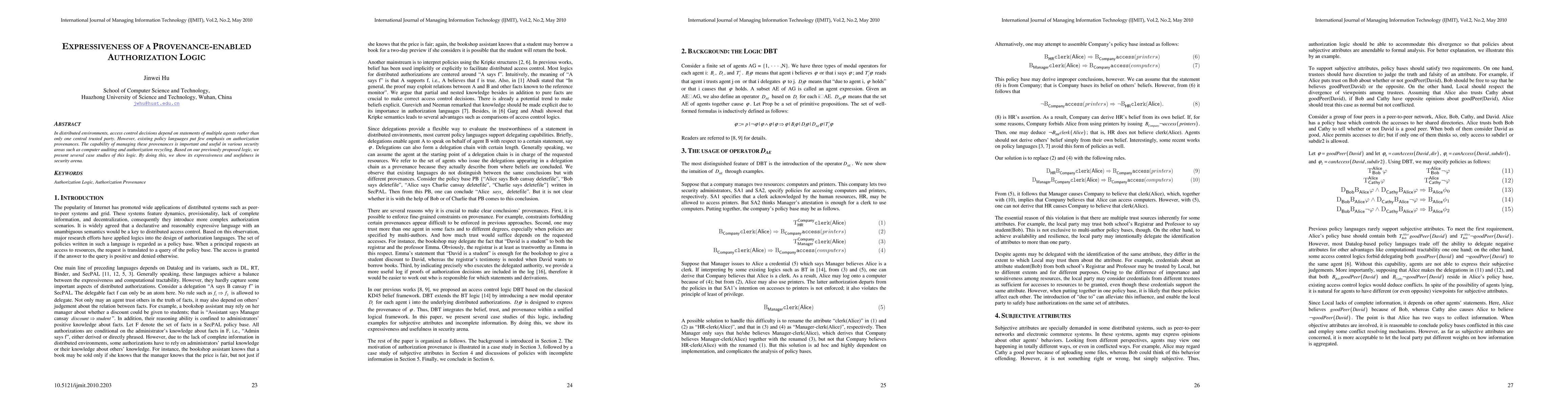 In distributed environments, access control decisions depend on statements of multiple agents rather than only one central trusted party. However, existing policy languages put few emphasis on authorization provenances. The capability of managing these provenances is important and useful in various security areas such as computer auditing and authorization recycling. Based on our previously proposed logic, we present several case studies of this logic. By doing this, we show its expressiveness and usefulness in security arena.