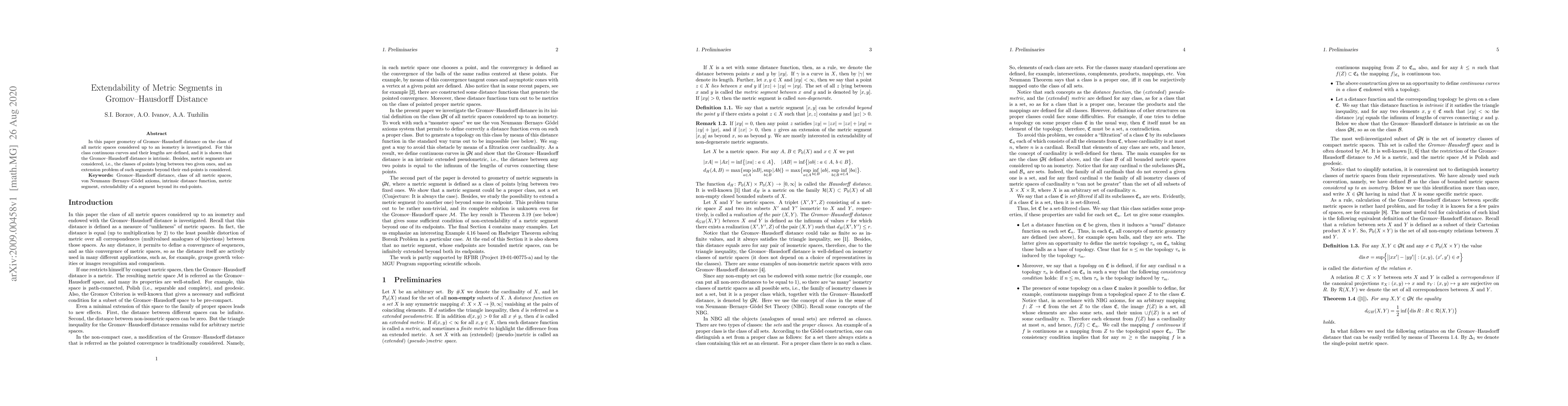 This paper explores the intrinsic properties of the Gromov-Hausdorff distance in metric spaces, defining continuous curves and their lengths, and investigates the extendability of metric segments beyond their endpoints.