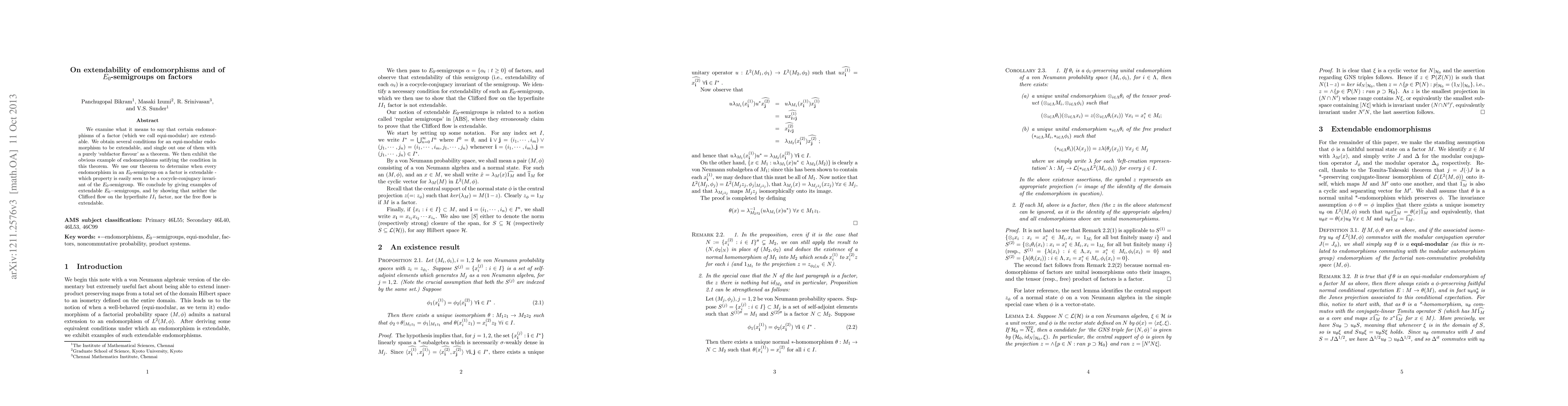 We begin this note with a von Neumann algebraic version of the elementary but extremely useful fact about being able to extend inner-product preserving maps from a total set of the domain Hilbert space to an isometry defined on the entire domain. This leads us to the notion of when `good' endomorphisms of a factorial probability space $(M,\phi)$ (which we call equi-modular) admit a natural extension to endomorphisms of $L^2(M,\phi)$. We exhibit examples of such extendable endomorphisms. We then pass to $E_0$-semigroups $\alpha = {\alpha_t: t \geq 0}$ of factors, and observe that extendability of this semigroup (i.e., extendability of each $\alpha_t$) is a cocycle-conjugacy invariant of the semigroup. We identify a necessary condition for extendability of such an $E_0$-semigroup, which we then use to show that the Clifford flow on the hyperfinite $II_1$ factor is not extendable.