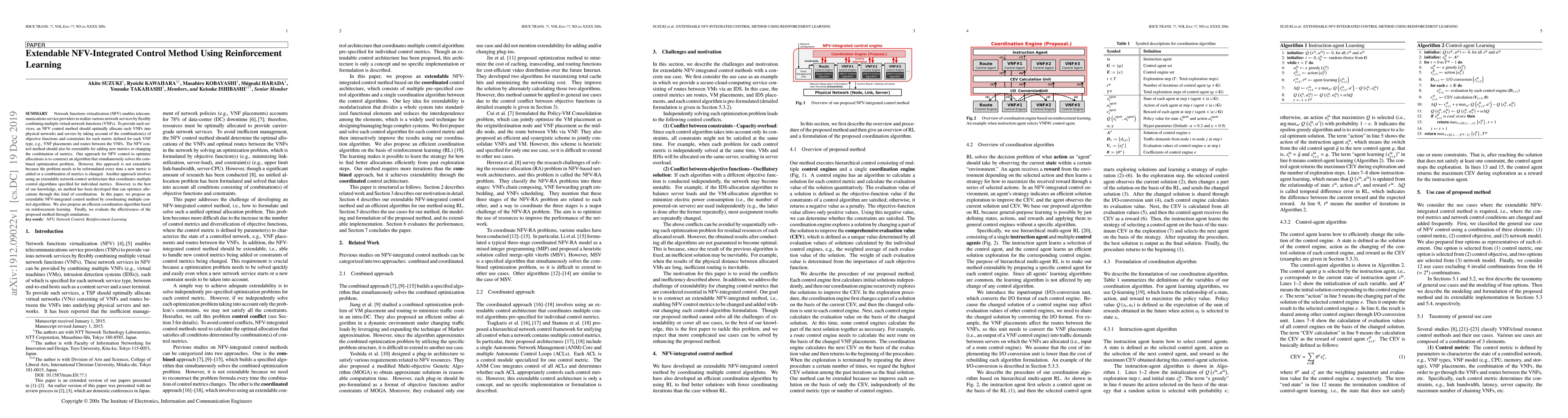 Researchers propose an extendable NFV control method using reinforcement learning to optimize allocations of virtual network functions in physical networks, enabling easy addition or changes of metrics and algorithms.
