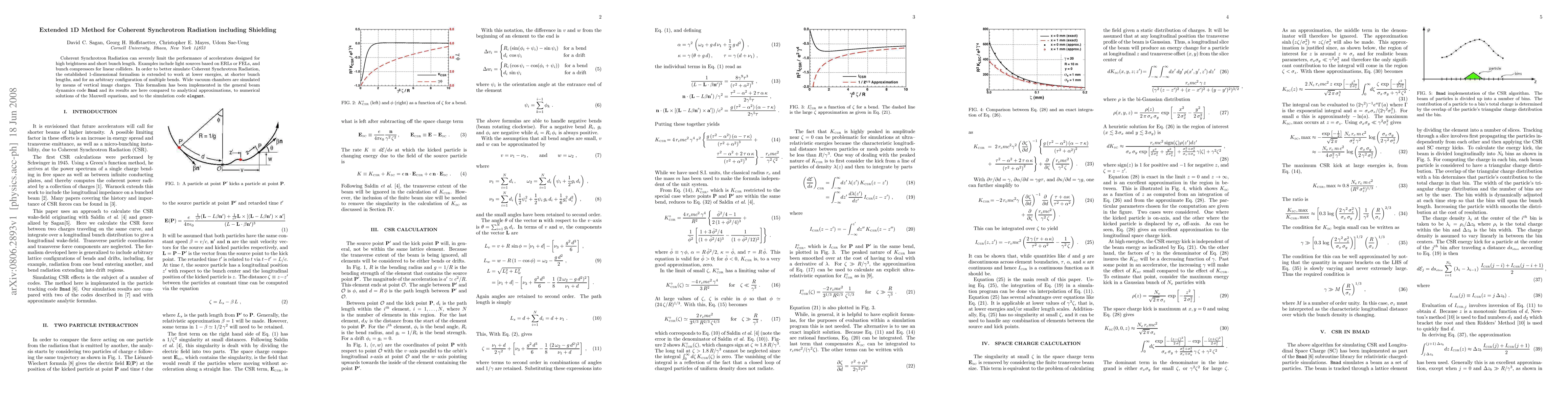 This paper extends the 1D formalism to simulate Coherent Synchrotron Radiation in accelerators at lower energies and shorter bunch lengths, incorporating shielding effects and multiple bends. The new method is implemented in the "Bmad" code and validated against analytical and numerical solutions.