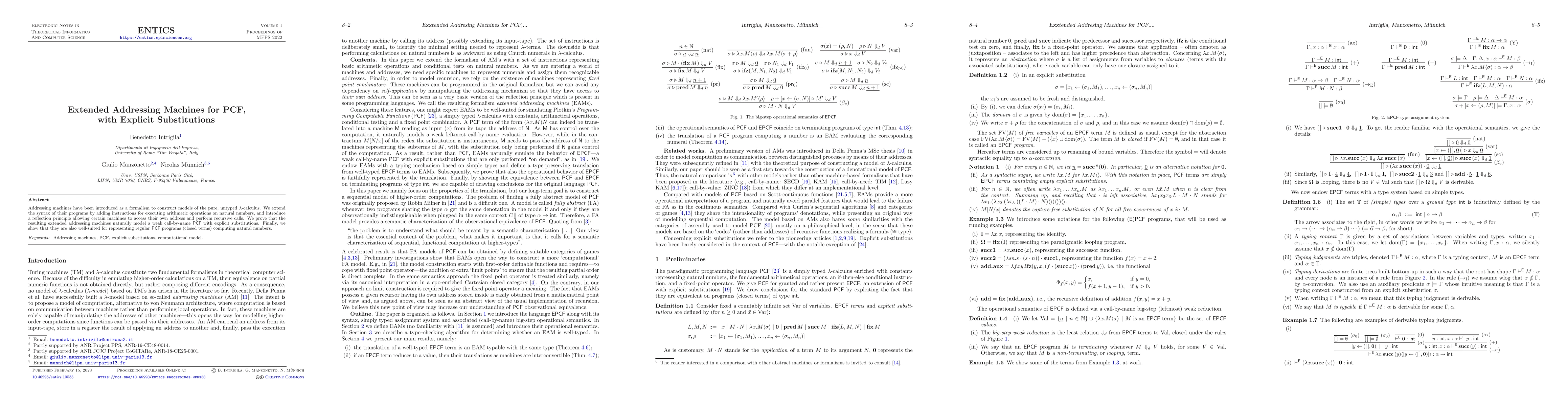This paper extends addressing machines to model a weak call-by-name PCF with explicit substitutions by incorporating arithmetic operations and a reflection principle for recursive calls. It demonstrates their capability to represent regular PCF programs computing natural numbers.