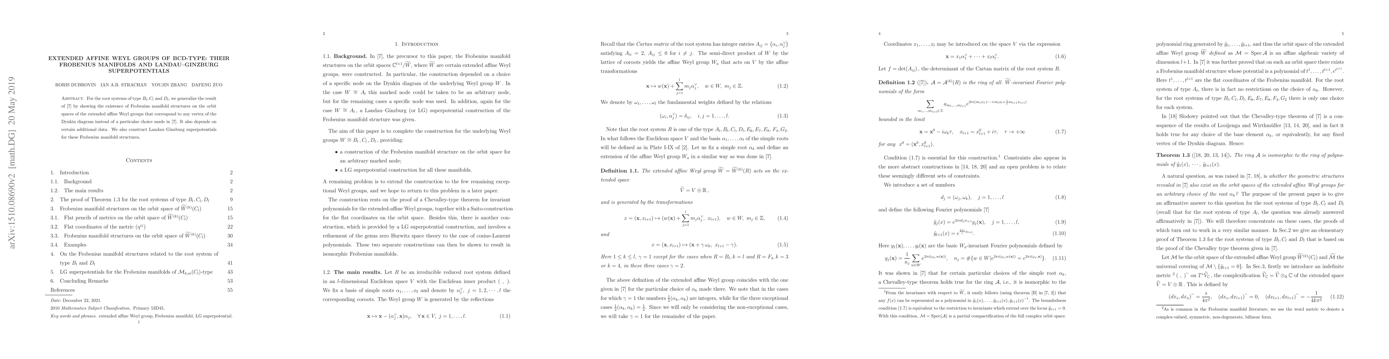 This paper generalizes the existence of Frobenius manifold structures on orbit spaces of extended affine Weyl groups for root systems of type $B_l, C_l$, and $D_l$, extending previous results. It constructs Landau-Ginzburg superpotentials for these structures, applicable to any vertex of the Dynkin diagram.