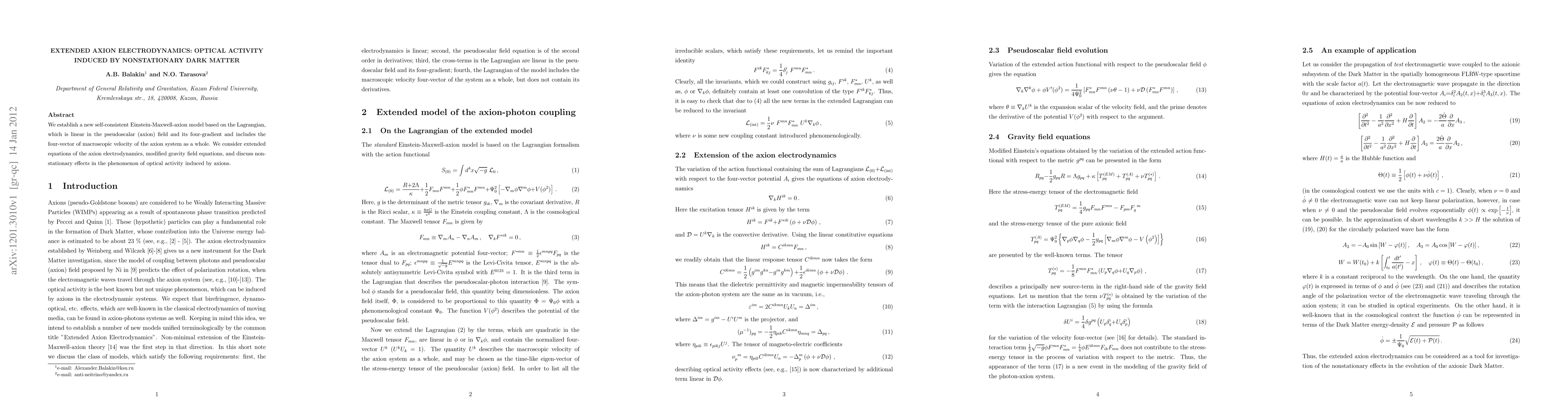 This paper develops a new Einstein-Maxwell-axion model incorporating axion electrodynamics and nonstationary dark matter effects, focusing on optical activity induced by the macroscopic velocity of axion systems. The study discusses modifications to gravity field equations and the implications for optical phenomena.