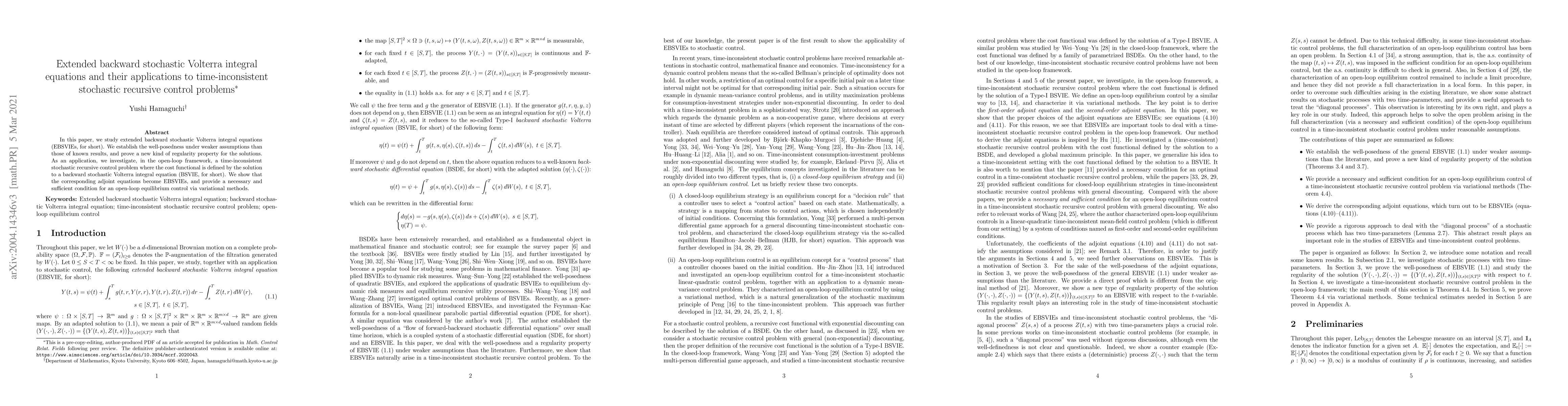 In this paper, we study extended backward stochastic Volterra integral equations (EBSVIEs, for short). We establish the well-posedness under weaker assumptions than the literature, and prove a new kind of regularity property for the solutions. As an application, we investigate, in the open-loop framework, a time-inconsistent stochastic recursive control problem where the cost functional is defined by the solution to a backward stochastic Volterra integral equation (BSVIE, for short). We show that the corresponding adjoint equations become EBSVIEs, and provide a necessary and sufficient condition for an open-loop equilibrium control via variational methods.