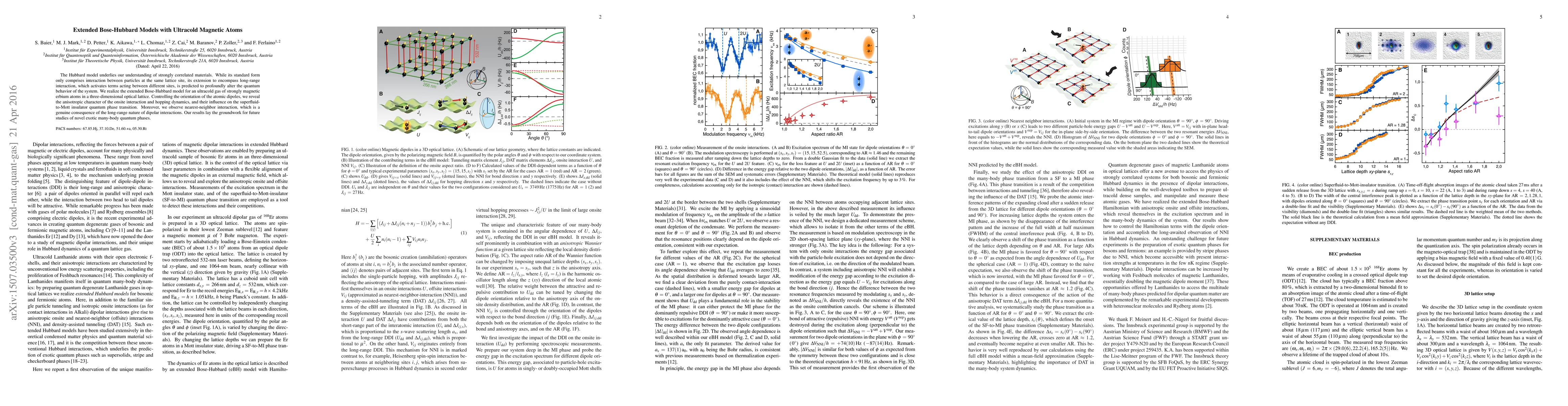 The Hubbard model underlies our understanding of strongly correlated materials. While its standard form only comprises interaction between particles at the same lattice site, its extension to encompass long-range interaction, which activates terms acting between different sites, is predicted to profoundly alter the quantum behavior of the system. We realize the extended Bose-Hubbard model for an ultracold gas of strongly magnetic erbium atoms in a three-dimensional optical lattice. Controlling the orientation of the atomic dipoles, we reveal the anisotropic character of the onsite interaction and hopping dynamics, and their influence on the superfluid-to-Mott insulator quantum phase transition. Moreover, we observe nearest-neighbor interaction, which is a genuine consequence of the long-range nature of dipolar interactions. Our results lay the groundwork for future studies of novel exotic many-body quantum phases.