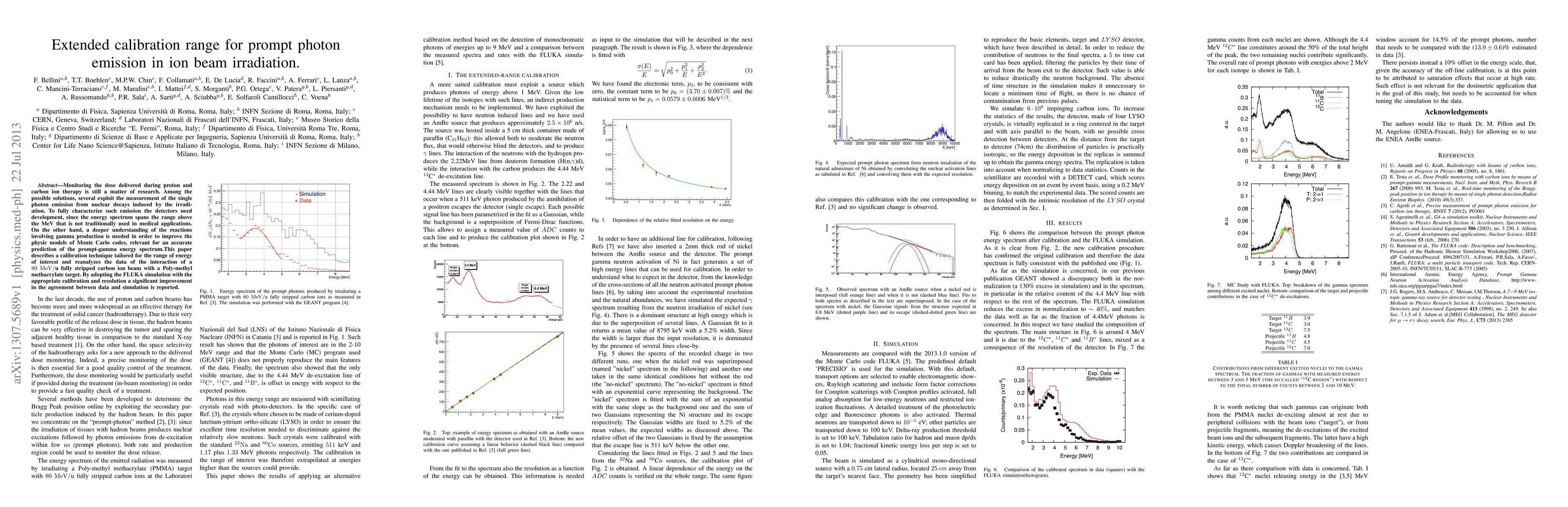 This work introduces an extended calibration range for prompt photon emission, utilizing neutron-induced gamma lines from an AmBe source and enhancing the FLUKA simulation with appropriate calibration and resolution for better agreement with experimental data.