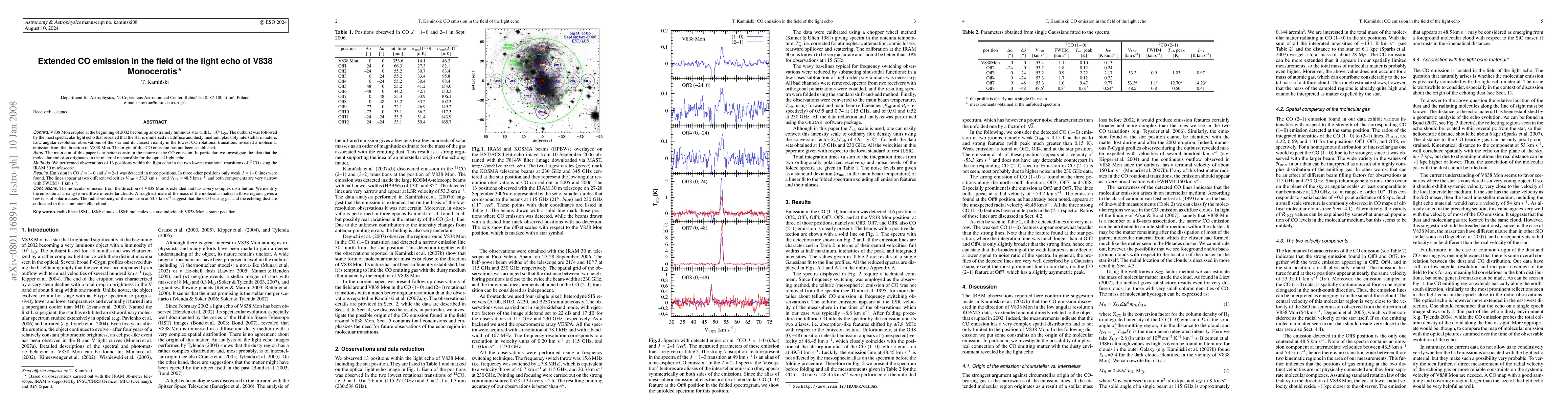 Research on V838 Mon reveals extended CO emission from a diffuse interstellar cloud, with gas and echoing dust collocated in the same cloud, suggesting a unique astronomical phenomenon.