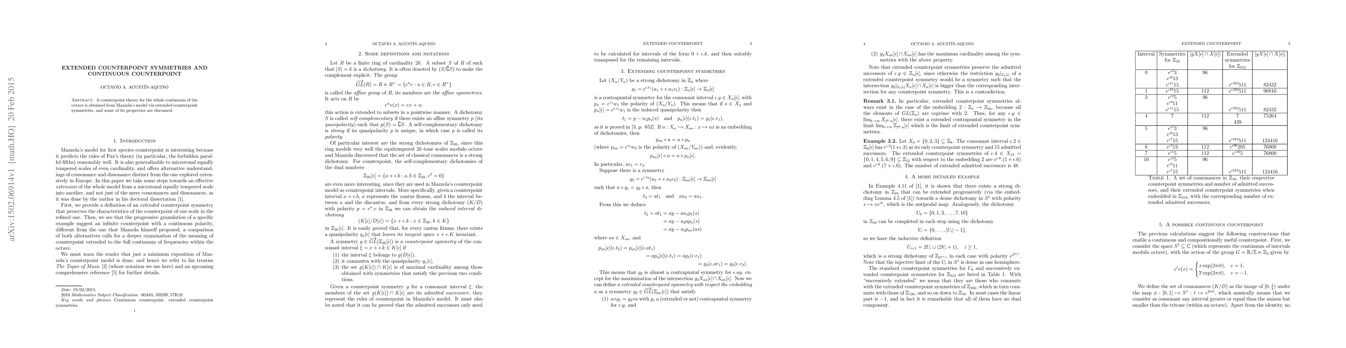 Summary: This paper extends Mazzola's model to develop a counterpoint theory for the entire continuum of the octave, utilizing extended counterpoint symmetries, and explores some of its fundamental properties.