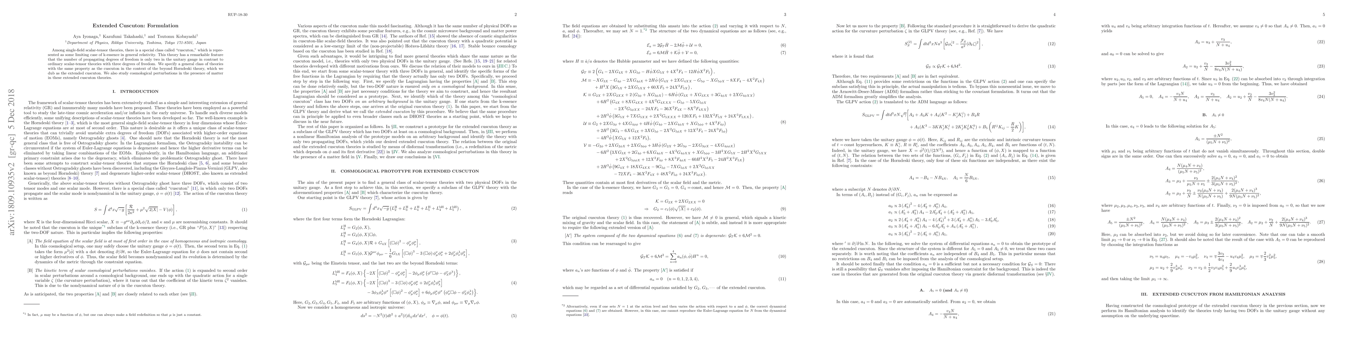 This paper introduces extended cuscuton theories, a class of single-field scalar-tensor theories beyond Horndeski, which propagate only two degrees of freedom. It also investigates cosmological perturbations in these theories in the presence of matter.