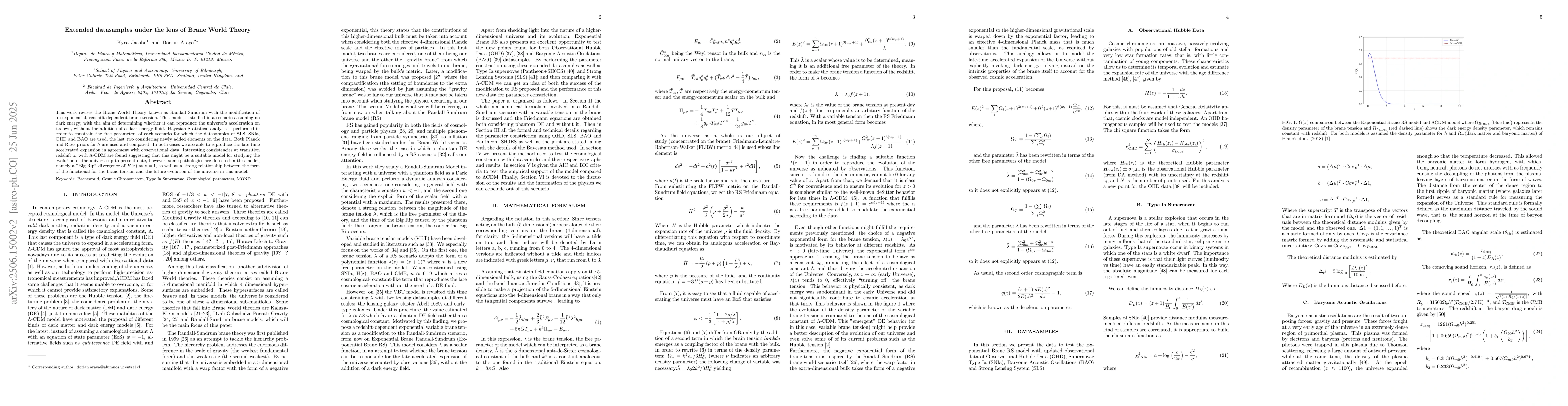 This work revises the Brane World Theory known as Randall-Sundrum with the modification of an exponential, redshift-dependent brane tension. This model is studied in a scenario assuming no dark energy, with the aim of determining whether it can reproduce the universe's acceleration on its own, without the addition of a dark energy fluid. Bayesian statistical analysis is performed in order to constrain the free parameters of each scenario using SLS, SNIa, OHD, and BAO data samples, the last two considering newly added data points. Both Planck and Riess priors for h are used and compared. In both cases, we are able to reproduce the late-time accelerated expansion in agreement with observational data. Interesting consistencies at the transition redshift zt with LCDM are found, suggesting that this might be a suitable model for studying the evolution of the universe up to the present date. However, some pathologies are detected in this model, namely a "Big Rip" divergence of H(z) at z = 1, as well as a strong dependence between the functional form of the brane tension and the future evolution of the universe.