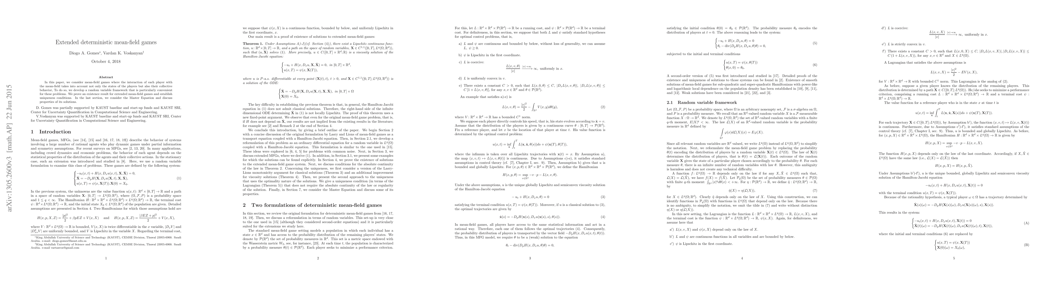 This paper develops a random variable framework for extended deterministic mean-field games, considering both individual player states and collective behavior. It proves existence and uniqueness for these games and analyzes the Master Equation's properties.