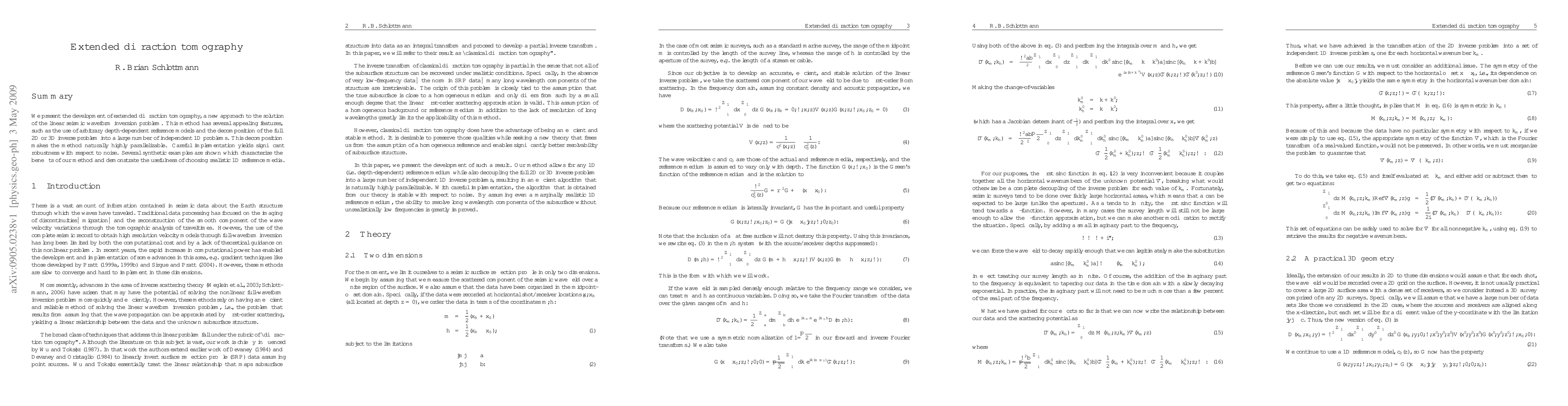 The main technical or theoretical contribution is the development of extended diffraction tomography, which can efficiently and accurately solve the linear seismic inversion problem.